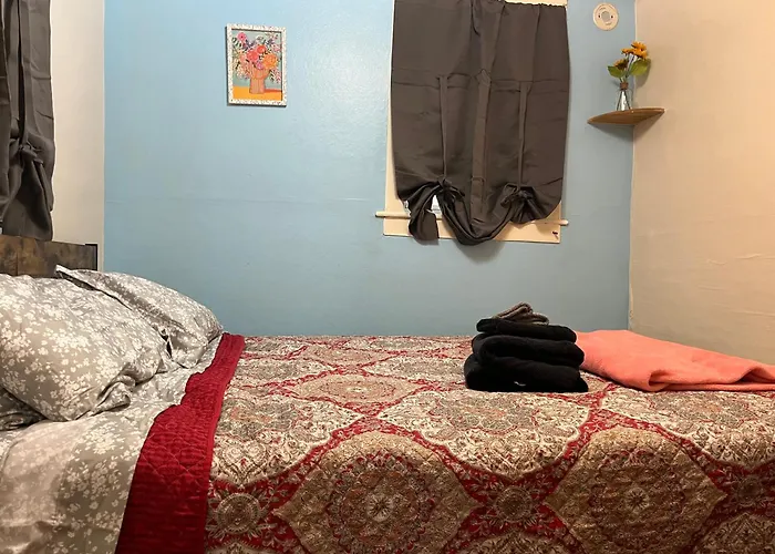 El Fanciful, Comfy Private Room - Lourdes Hospital está equipado con una cocina compartida y una zona de comedor para que los huéspedes puedan disfrutar de sus comidas. Los huéspedes también pueden tomar un autobús en la estación de autobuses Floral & Burbank, situada a 250 metros, para explorar Johnson City. Un patio es un lugar ideal para cenar y tomar una copa.